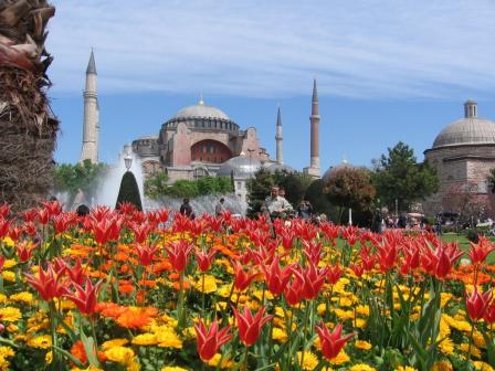 ПоÑещение храма СвÑтой Софии. Ðто ÑÑ‚Ð°Ñ€Ð¸Ð½Ð½Ð°Ñ Ð±Ð°Ð·Ð¸Ð»Ð¸ÐºÐ°, поÑÑ‚Ñ€Ð¾ÐµÐ½Ð½Ð°Ñ ÐšÐ¾Ð½Ñтантином Великим в IV веке и реконÑтруирована ЮÑтинианом в VI веке, храм ÑвлÑетÑÑ Ð¾Ð´Ð½Ð¸Ð¼ из архитектурных Ñ‡ÑƒÐ´ÐµÑ Ð²Ñех времен.